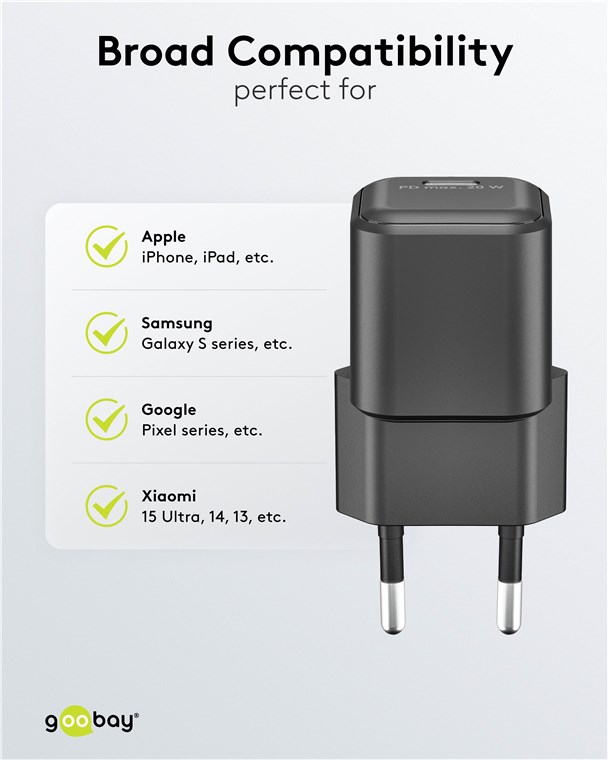 - Moc 20 W sprawia, że adapter do ładowania jest specjalnie dostosowany do małych urządzeń, takich jak smartfony, słuchawki Bluetooth, tablety czy powerbanki