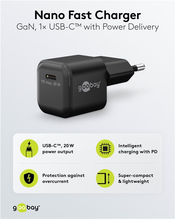 Szybka ładowarka USB-C™ PD GaN Nano (20 W) czarny