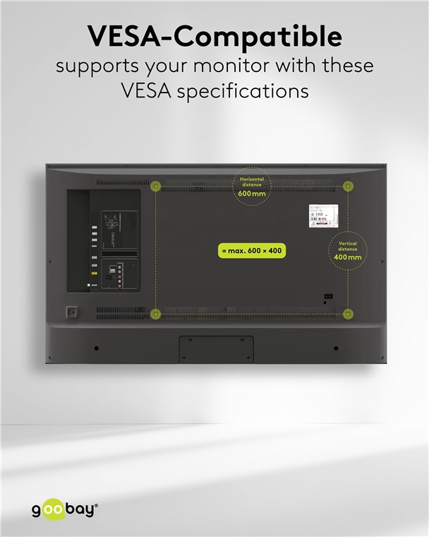 - Uchwyt do telewizora jest zgodny ze standardem VESA 600x400 mm oraz wszystkimi mniejszymi wymiarami VESA