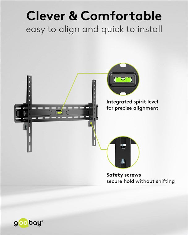 - Wbudowana poziomica zapewnia precyzyjne wyrównanie i łatwą instalację telewizora