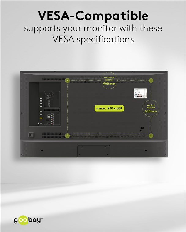 - Uchwyt do telewizora jest zgodny ze standardem VESA 900x600 mm oraz wszystkimi mniejszymi wymiarami VESA