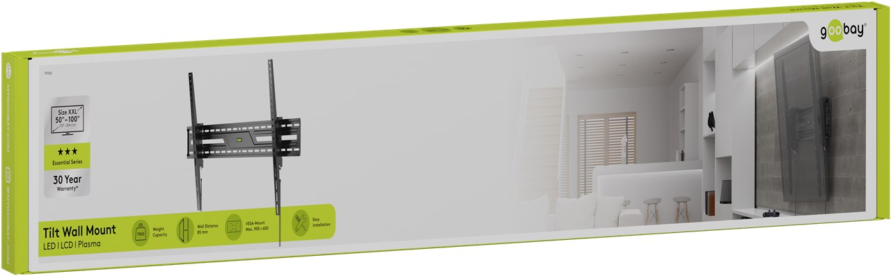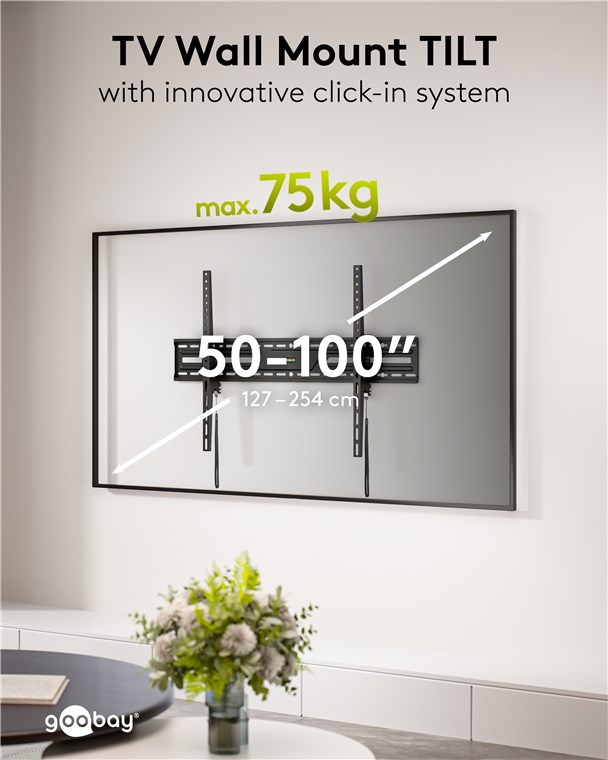 - Wyjątkowo wytrzymały i elastyczny: uchwyt do telewizora przekonuje nośnością do 75 kg, funkcją pochylania i odległością od ściany wynoszącą 85 mm – idealny do szczególnie dużych telewizorów