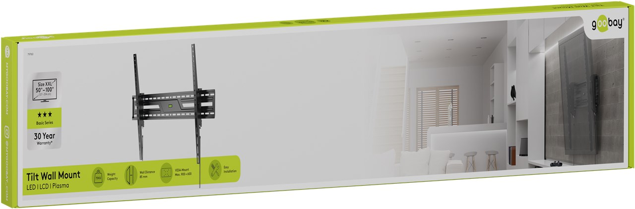 • Wyjątkowo wytrzymały i elastyczny: uchwyt do telewizora przekonuje nośnością do 75 kg, funkcją pochylania i odległością od ściany wynoszącą 85 mm – idealny do szczególnie dużych telewizorów