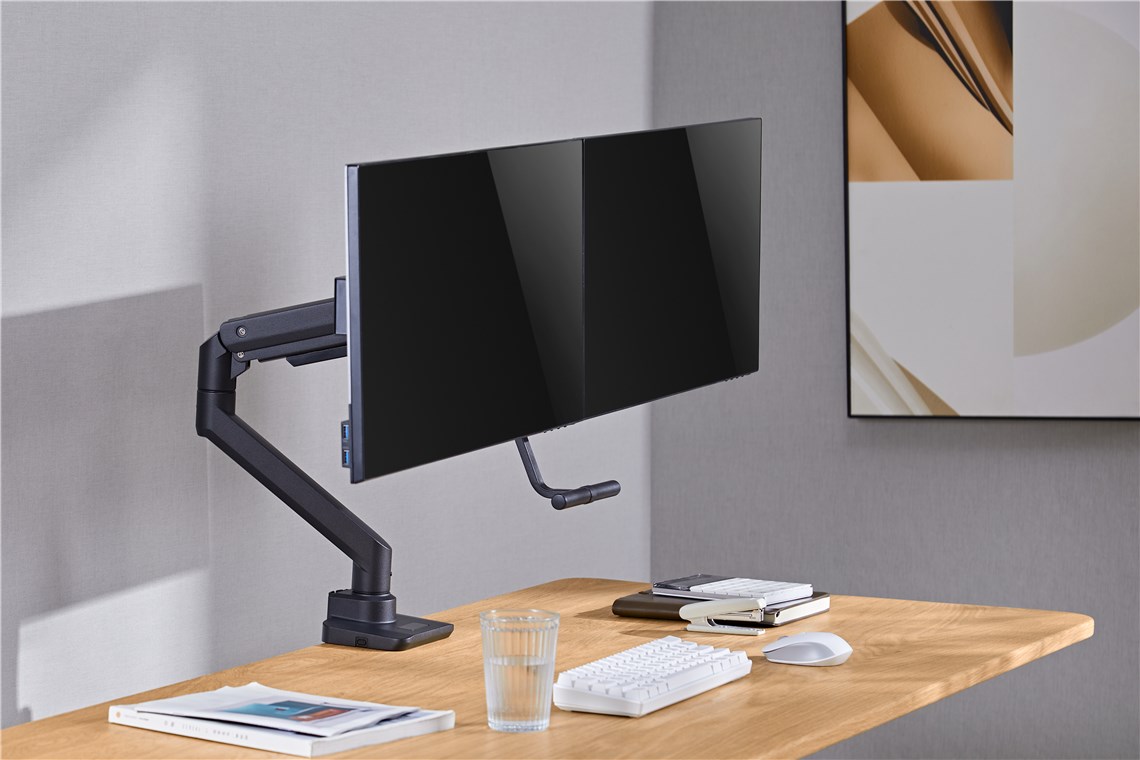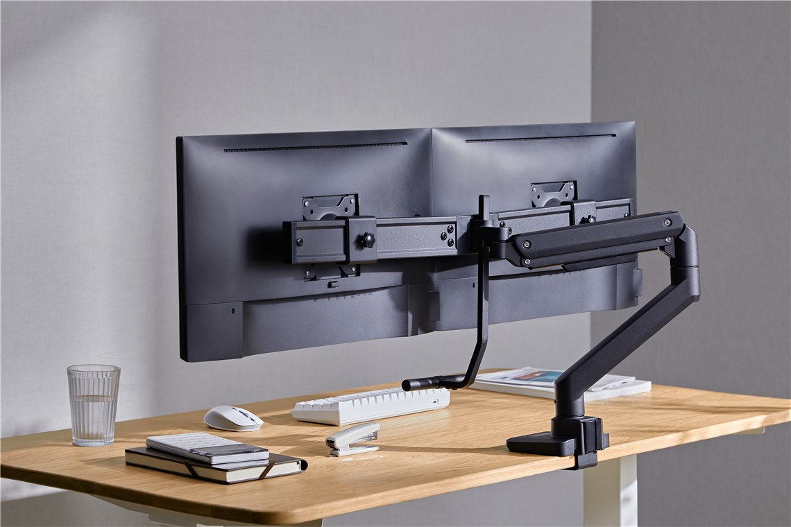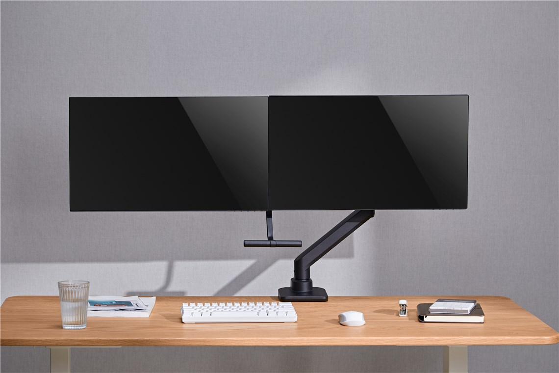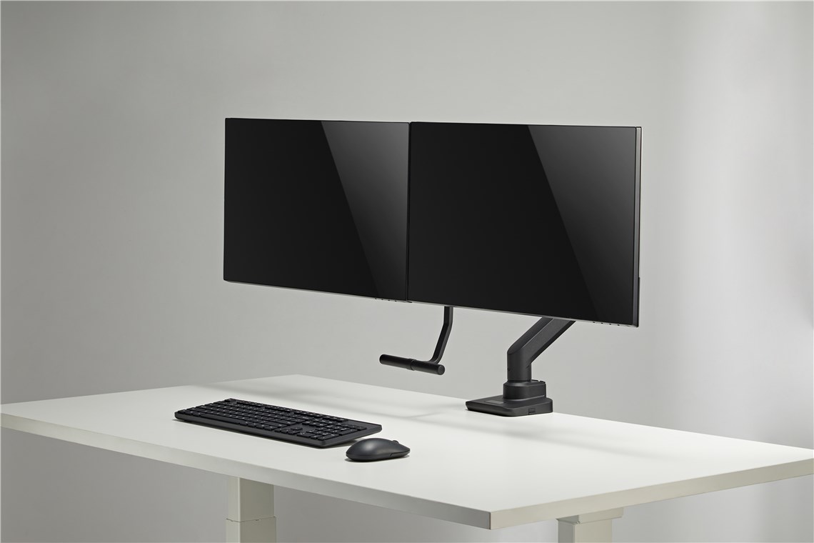 - Dzięki praktycznemu uchwytowi oba monitory można obracać i ustawiać synchronicznie – wygodnie i bez wysiłku dzięki gazowej sprężynie dociskowej