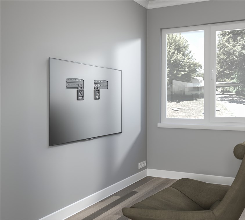 • Niezwykle płaski uchwyt do telewizora z odległością od ściany wynoszącą zaledwie 7,5 mm, dzięki czemu urządzenie prawie przylega do ściany i nie wystaje do pomieszczenia