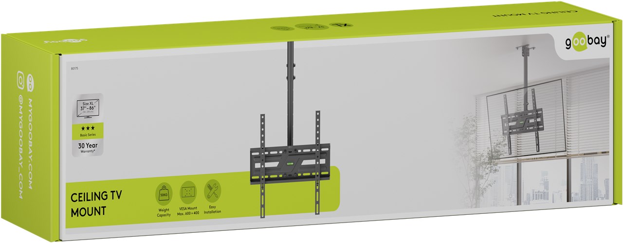 Kiedy ten uchwyt jest idealnym rozwiązaniem? Jeśli chcesz zamontować telewizor na skośnym lub zwykłym suficie. Dzięki teleskopowemu ramieniu i płynnie regulowanym przegubom możesz bardzo elastycznie ustawić kąt widzenia. Uchwyt telewizyjny sprawdza się również w pomieszczeniach z przeszklonymi ścianami: W pomieszczeniach komercyjnych, takich jak biura, bistro lub siłownie, telewizor można po prostu umieścić na suficie – aby uzyskać optymalny kąt widzenia niezależnie od miejsca w pomieszczeniu. Aby w pełni skupić się na tym, co najważniejsze.