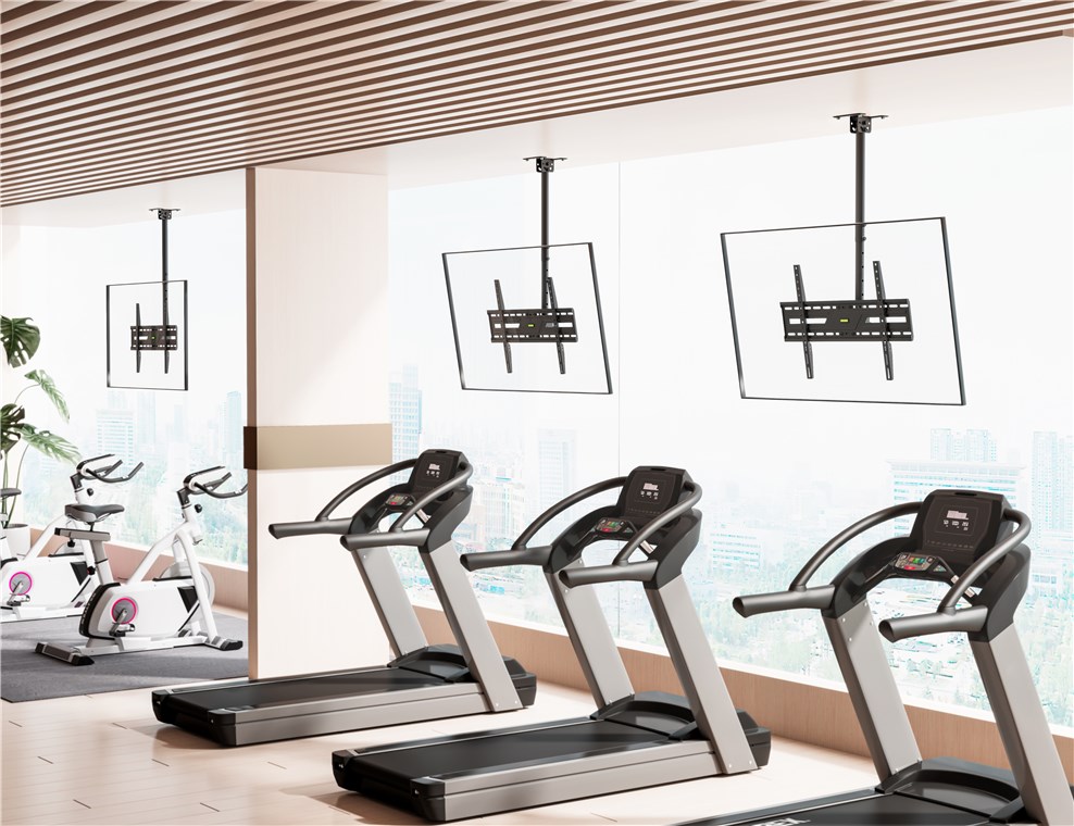 • Uchwyt telewizyjny do montażu na skośnych lub zwykłych sufitach: Szczególnie praktyczny, gdy nie ma ściany do zamocowania, np. w pomieszczeniach z przeszklonymi fasadami