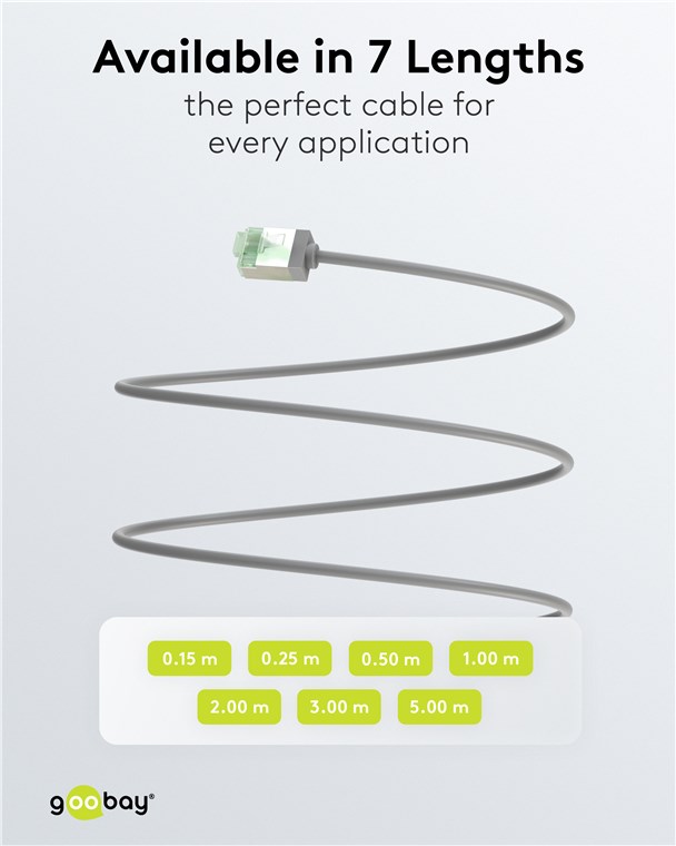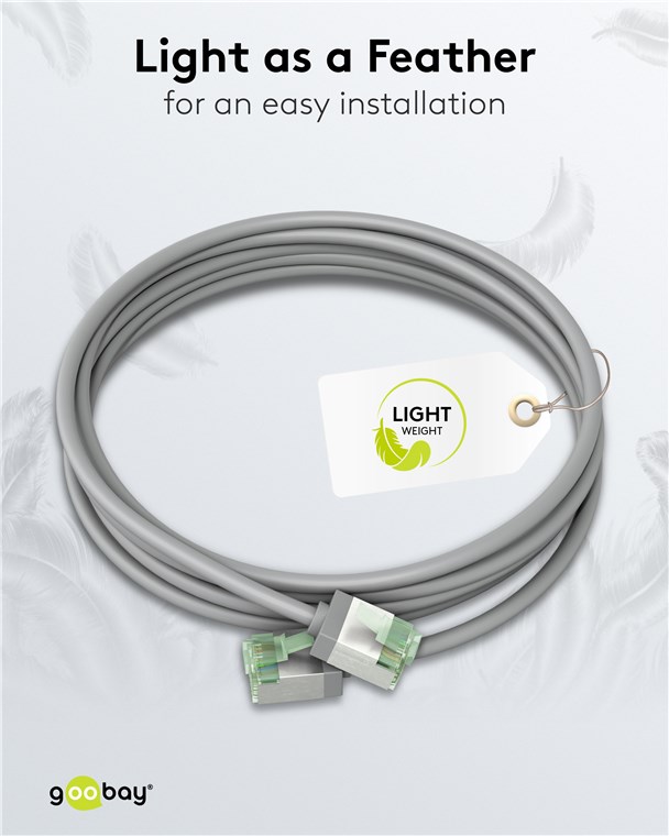 CATegoria sama dla siebie: Super cienkie kable CAT z bardzo krótkimi złączami drastycznie zmniejszają objętość materiału w szafach serwerowych i panelach krosowych - dla znacznie lepszej cyrkulacji powietrza i mniejszego gromadzenia się ciepła niż w przypadku konwencjonalnego okablowania. Ponadto, miękki płaszcz TPE i cienkie miedziane przewodniki zapewniają wyjątkową elastyczność i wydajność materiałową, które sprawiają, że ta generacja kabli jest idealnym partnerem sieciowym.