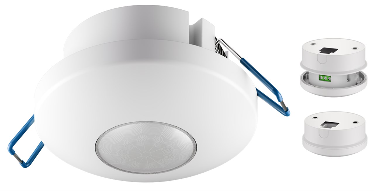 do montażu podtynkowego na suficie, wykrywanie 360°, zasięg 6 m/8 m, do użytku wewnątrz pomieszczeń (IP20), przystosowany do diod LED