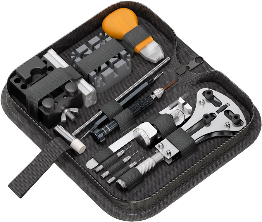 - Narzędzia zegarmistrzowskie dla początkujących i zaawansowanych do wymiany baterii lub paska zegarka oraz do skracania pasków ogniwowych