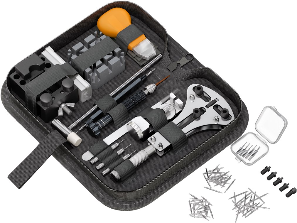 Czas na Twój debiut jako zegarmistrz! Dzięki temu zestawowi z łatwością samodzielnie naprawisz, wyregulujesz lub zbudujesz swój zegarek na rękę. Wymiana baterii lub paska to teraz Twoja specjalność, a dzięki wielu precyzyjnym narzędziom to prawdziwa bułka z masłem – bardzo łatwo i bez zarysowania Twojego ukochanego chronometru. Dzięki dużemu wyborowi sprężyn i zawleczek masz pod ręką odpowiednie części zamienne. Fix it. Wear it. Trust it.