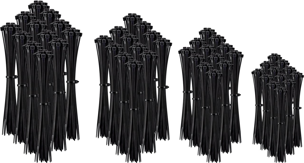- 5 różnych rozmiarów: 300 szt. po 2,5 x 100 mm, 300 szt. po 2,5 x 150 mm, 200 szt. po 3,6 x 200 mm, 100 szt. po 3,6 x 250 mm, 100 szt. po 3,6 x 300 mm