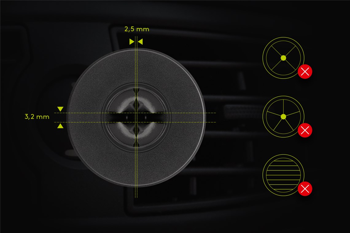 - Technologia quick-snap umożliwia łatwe i stabilne przymocowanie uchwytu na telefon komórkowy do wentylacji.