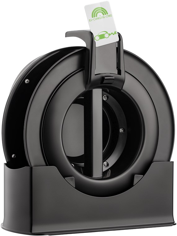 Zwijacz kabla to wyjątkowe rozwiązanie do przechowywania kabla do ładowania pojazdu elektrycznego. Zwijając bęben, należy dotykać tylko wtyczek, a nie kabla. W ten sposób można uniknąć zabrudzenia rąk lub ubrania przez kabel oraz zapobiec zabrudzeniu i plątaninie kabli w bagażniku. W dołączonej do zestawu stacji dokującej z rzepem kołowrotek jest porządnie i bezpiecznie zamocowany w bagażniku.